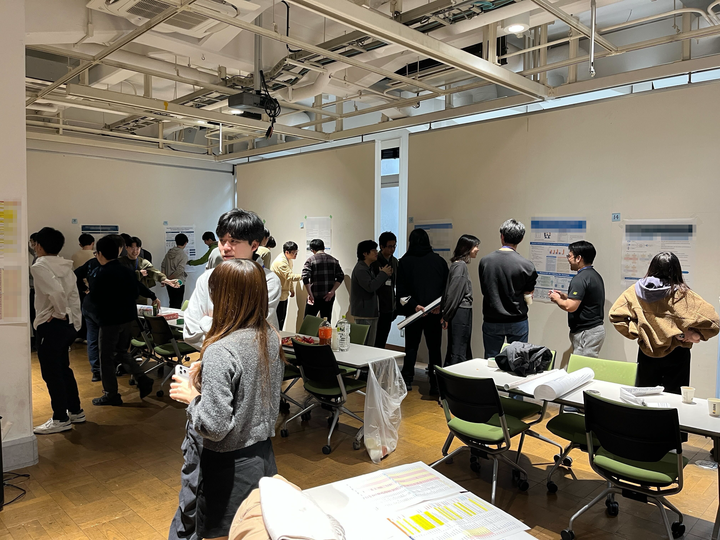 研究室では毎月ポスター発表会の機会が設けられ、互いの研究成果の発表やディスカッションを積極的に実施しています。
